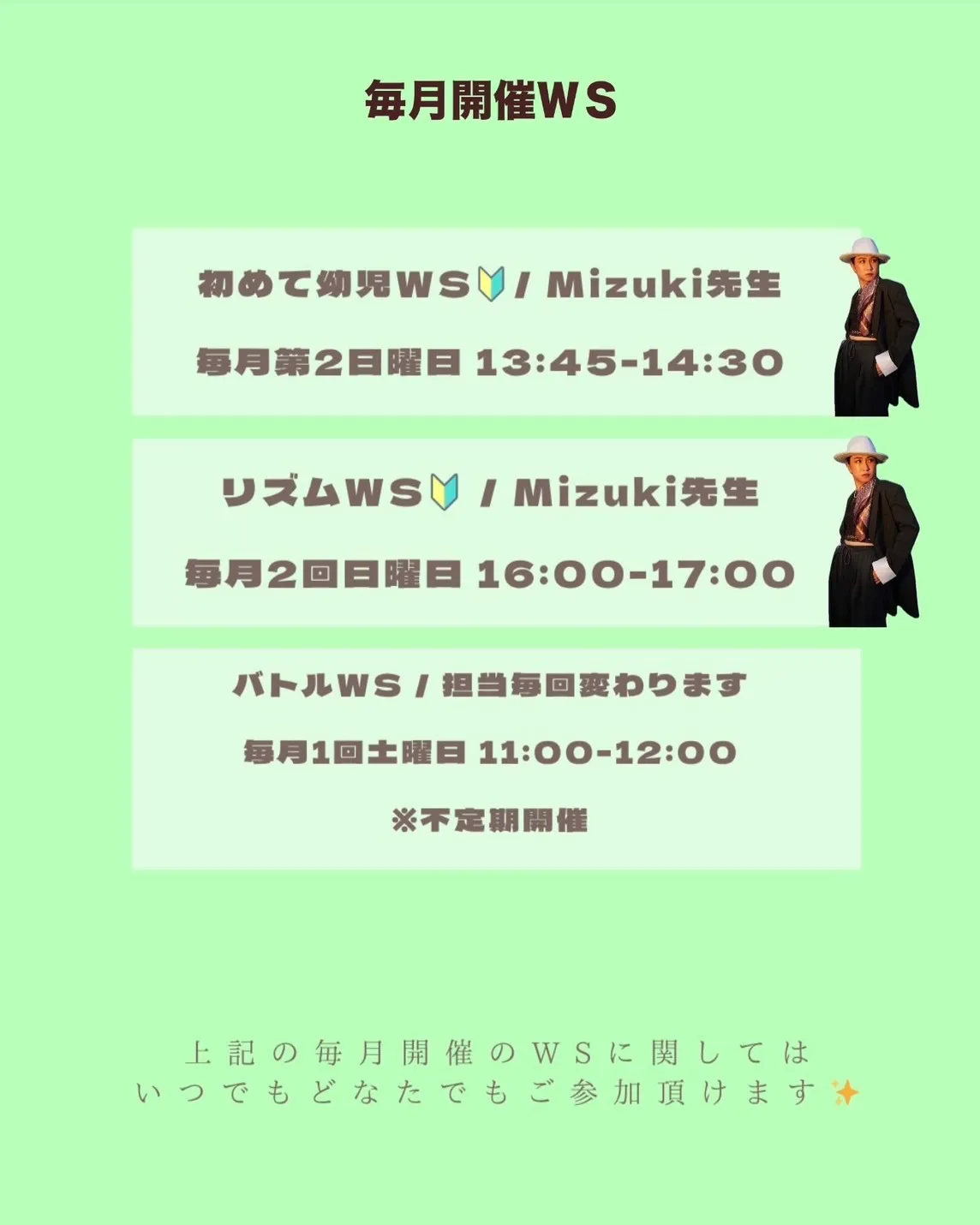 ★第2日曜日 13:45-14:30 初めて幼児WS / Mizuki