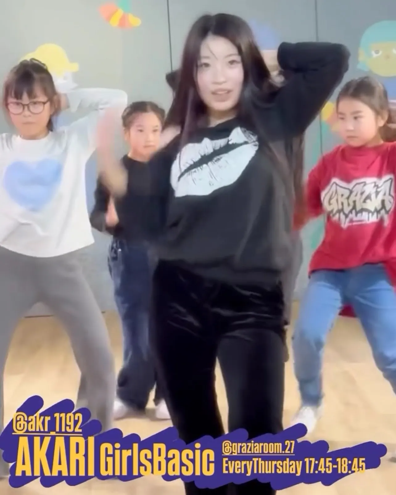 本日ご紹介させていただくクラスはグラジアダンススタジオの大宮校にて、毎週木曜日の17時45分〜18時45分に開講させていただいている、あかり先生によるGirls Basicクラスです🌟