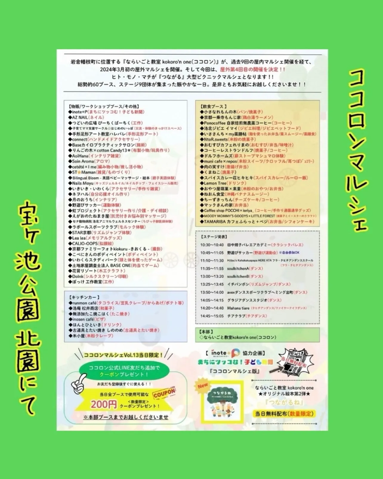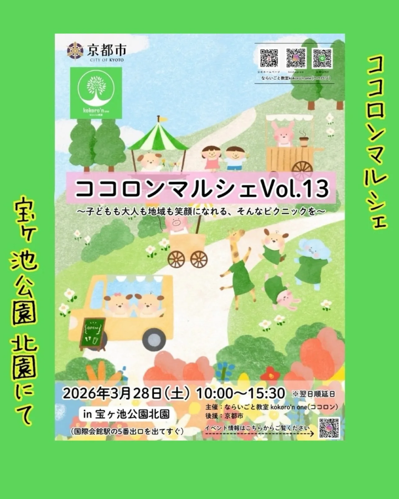 2026年3月28日に宝ヶ池公園北園にて開催されますココロンマルシェvol.13に、